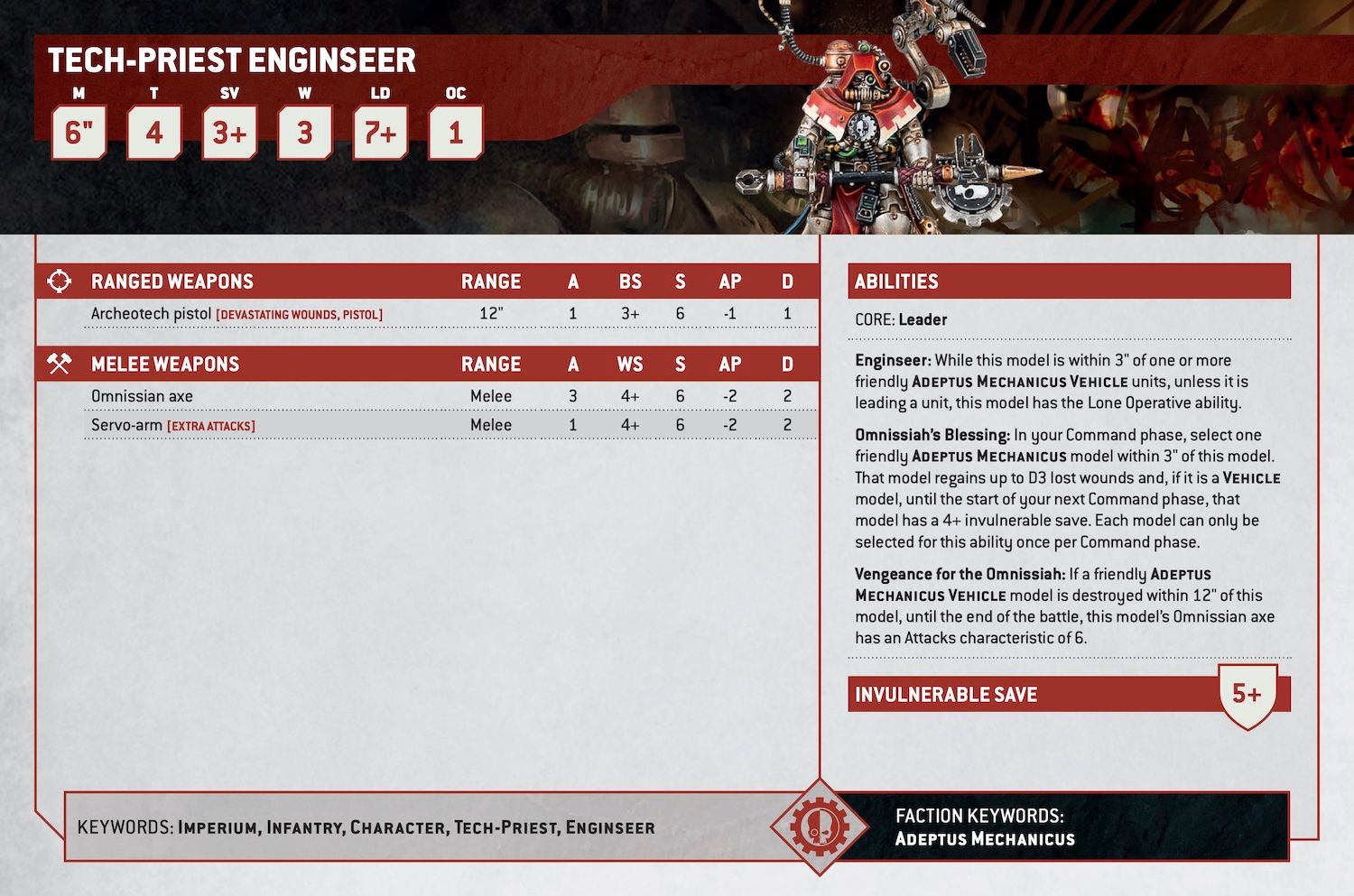 I'd argue the biggest issue is that most of our individual index unit cards have been nerfed into mediocrity and stripped of the lore / character that make them feel distinct, powerful, and, well, feel like AdMech units should.
