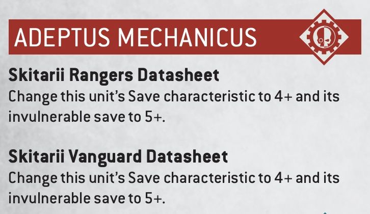 Update: In the September 2023 Balance Dataslate update, GW boosted the armor saves of Skitarii Vanguard and Rangers as follows: