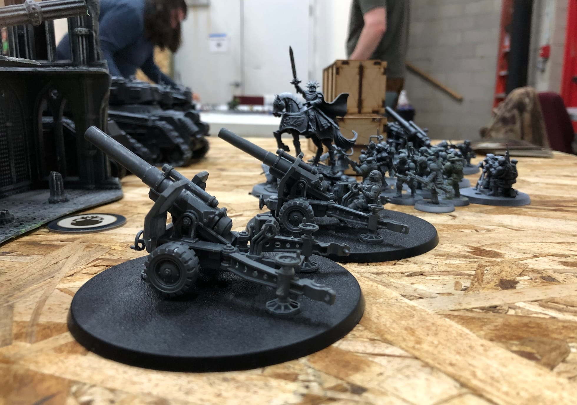 Command Phase: Three tanks get the Take Aim order, while the Cadian and Death Korps of Krieg squads get the Move, Move, Move! order. All of the Field Ordnance Batteries also get Take Aim.