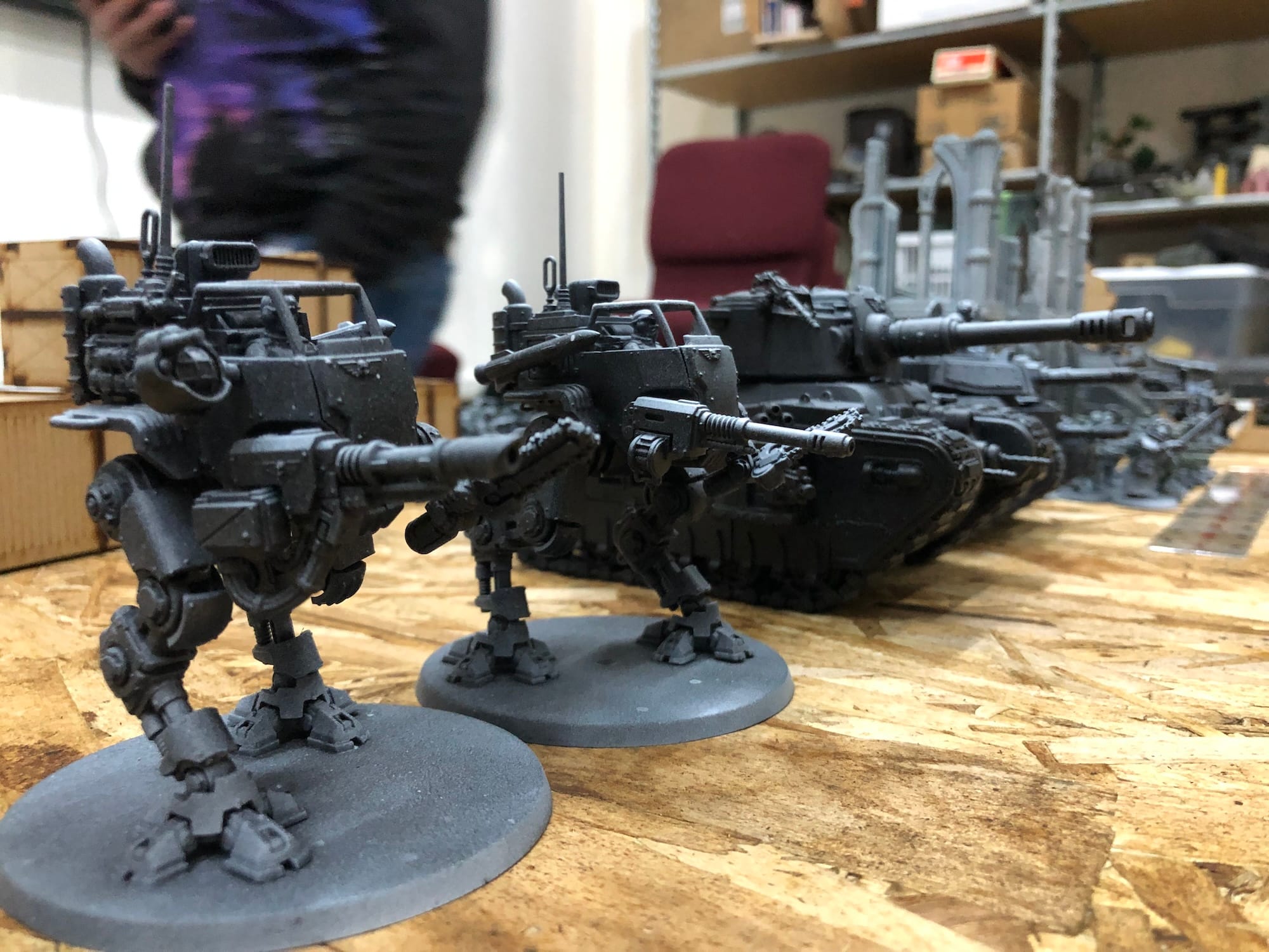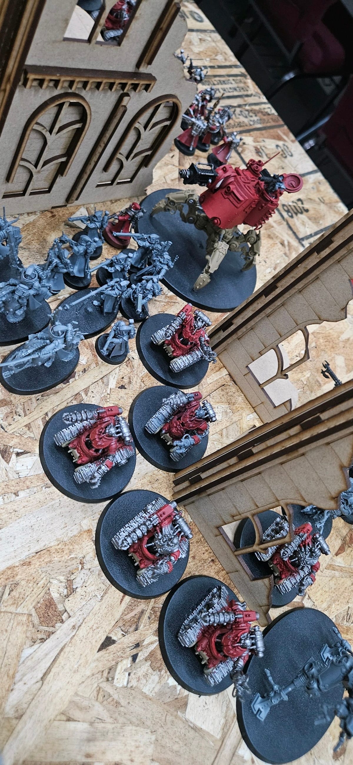Thoughts on Astra Militarum vs Adeptus Mechanicus? "This was the first time I played against Guard, and holy artillery do they have a lot of effective indirect fire. I'm also jealous of the speed and variety of guns on the Guard tanks—I wish AdMech had more tank-like vehicles. Also cool—and frustrating!—to see Guard regiments regenerating (Krieg) and the stratagem (Reinforcements!) that allows Guard players to redeploy destroyed units like Trevor did with his Cadians and Scout Sentinels. Great game, and looking forward to playing Trevor again someday."